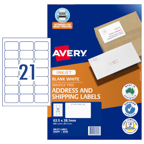 We deliver Australia wide and have shipping distribution centres available to dispatch orders from all major cities including Melbourne, Sydney, Brisbane, Perth and Adelaide. With so many locations, the Avery Quick Peel Address Labels - 63.5 x 38.1mm 21UP - 525 Labels - Pack of 25 along with any other items in your order will be delivered to your door normally within 1-2 business days. Same-day dispatch is often available to orders placed before 1pm. Delivery to rural locations may require extra time.